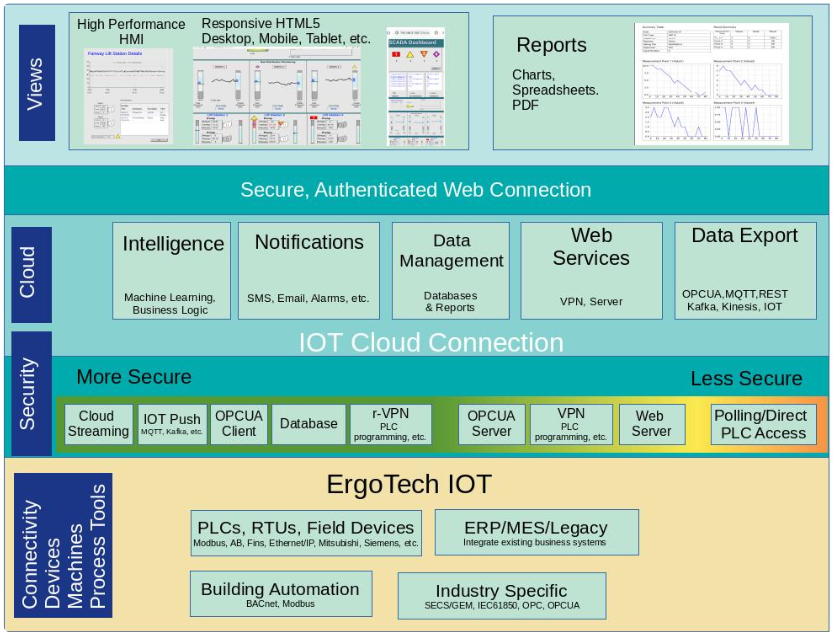 '디자인 창'에서 GUI/HMI를 만드는데 사용되는 구성 요소와 '다이어그램 창'에서 장치, 데이터베이스와 인터페이스하고 로직을 구축하는 데 사용되는 구성 요소를 제공하며, 디자인 창은 선, 막대 등의 차트 뿐만 아니라 모든 일반적인 보기, 알림, 버튼, 이미지 등을 지원한다. 다이어그램 창에서 "장치”에는 모든 주요 PLC는 물론 OPC (UA 및 레거시) 직렬 장치 및 MQTT, REST 등과 같은 IoT 프로토콜이 포함된다.